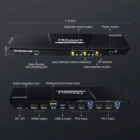 For Dual-monitor Setups: HKS202-P23 - Supports dual 4K@60Hz displays, allowing you to efficiently manage two computers and two displays with just one keyboard and mouse. It offers wide compatibility with various keyboards and mice, whether wired, wireless, mechanical, or gaming keyboards. With multiple switching options like hotkeys, front panel buttons, and a remote control, operations are smooth and convenient. It is compatible with high resolutions and supports HDMI 2.0/HDCP 2.2, handling 4K@60Hz, 3440x1440@100Hz, 2560x1440@120Hz, and other high-resolution signals effortlessly. Complete PC connection cables are included, and it supports Windows, Mac, and Linux systems.