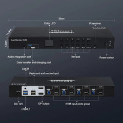 For Dual-display and Four-input Source Device Scenarios: PKS0402A20 - This is an exceptional multimedia switching solution that integrates both DTS and Dolby audio technologies, giving users the opportunity to realize feature highlights in various audio and video scenarios. PKS0402A20 introduces DTS and Dolby audio technologies into the switching solution, providing users with an unparalleled audio experience. Whether you are watching movies, gaming, or engaging in multimedia production, this KVM switch immerses you in exceptional sound. It comes equipped with a new color LCD display and front-panel buttons, making switching and controlling monitor signals effortless. Regardless of which display you need to switch the signal to, it can be done through simple operations, enhancing user convenience.