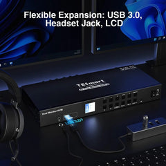 TESmart KVM switches, with their robust functionality and integration with DTS and Dolby audio technologies, provide crucial support for innovation in the tech industry. TESmart KVM switches also incorporate integrated microphone and left/right audio output functions, combined with DTS and Dolby audio technologies, enabling users to experience exceptional audio. This is essential for professionals conducting innovative research in the audio field, as they require high-fidelity audio output for music production, sound design, and acoustics research. When switching between different computers or devices, TESmart KVM switches' EDID emulation prevents resolution and icon rearrangement, ensuring users can seamlessly switch and maintain consistent display settings. This is particularly important for tech professionals who need to switch quickly between multiple devices, as they won't have to worry about display setting chaos.