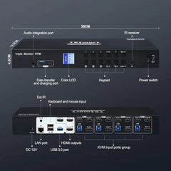 For Triple-display Setups: HKS0403A1U - This switch supports sharing among up to four computers and up to three displays, allowing you to enjoy convenient management of multiple devices. It features multiple USB 3.0 interfaces (including USB-C and charging functions), LAN ports, and headphone jacks, meeting audio and video transmission needs in home audiovisual setups. With flexible operation, multiple switching modes, and auto-scan functionality, it effortlessly achieves switching and management. With high-resolution (4K60Hz) output and extensive compatibility (3D, HDR, HDCP, Dolby Vision), you can enjoy high-quality and convenient home audiovisual experiences!