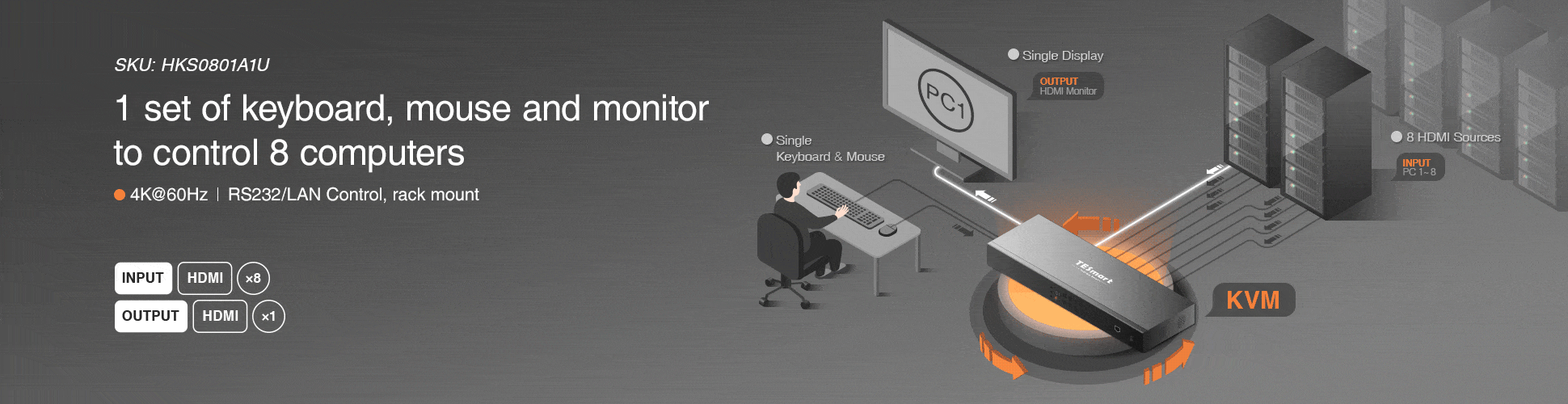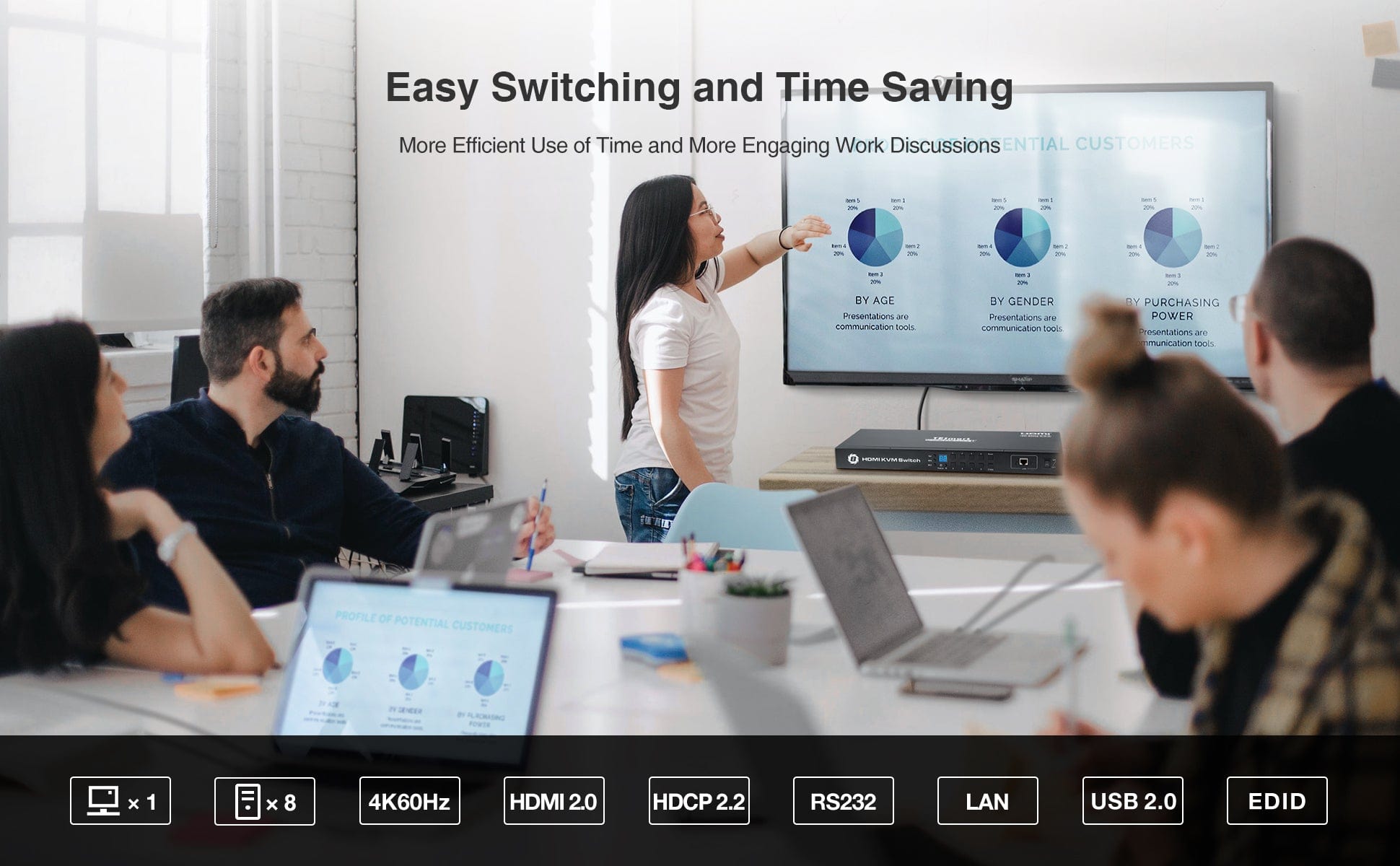 8 Port HDMI KVM Switch with 4K60Hz,RS232/LAN Control
