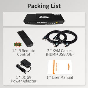- 2 * KVM (HDMI+USB) Cables