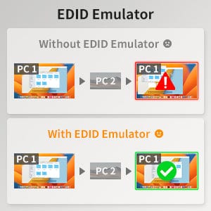- EDID emulation to maintain resolutions and icons.