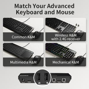 - Exceptionally compatible, thanks to its pass-through mode, this KVM works seamlessly with a variety of gaming keyboards and illuminated keyboards, surpassing other KVM switches that rely on USB emulation.