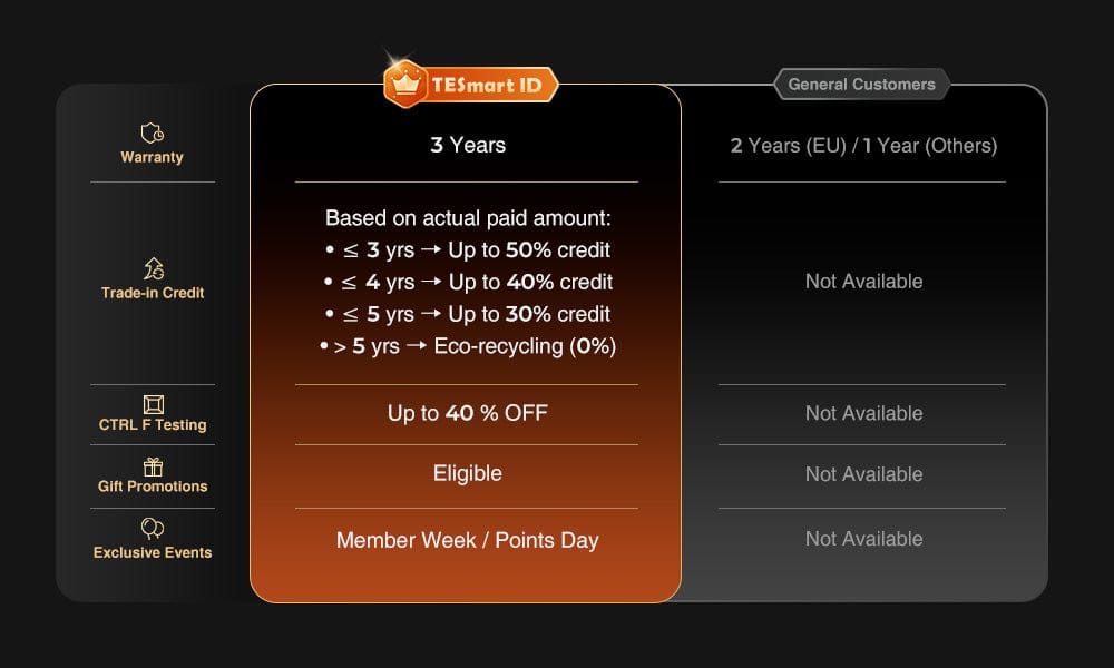 Activate your TESmart ID to unlock trade-in, extended warranty, and member rewards.