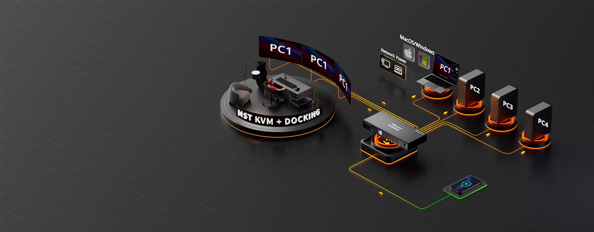 Use a single PC to drive all three monitors. Ideal for multi-window workflows like video editing, finance dashboards, or immersive simulations. Mirror or extend display via your system settings. - Mode 2: Any 3 of 4 PCs on 3 Monitors at Once