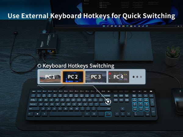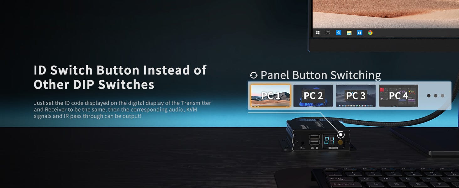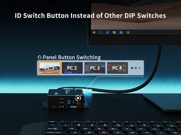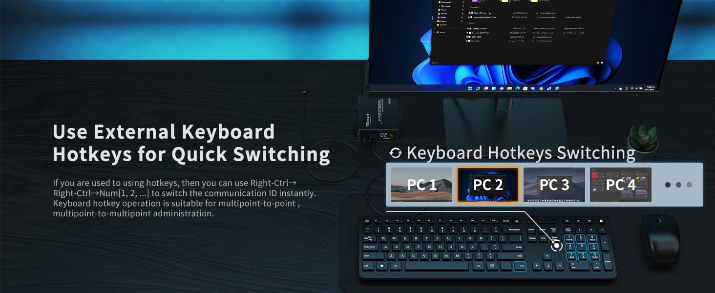- By transmitting keyboard and mouse data via UTP/FTP cable, it is easy to control PC remotely.