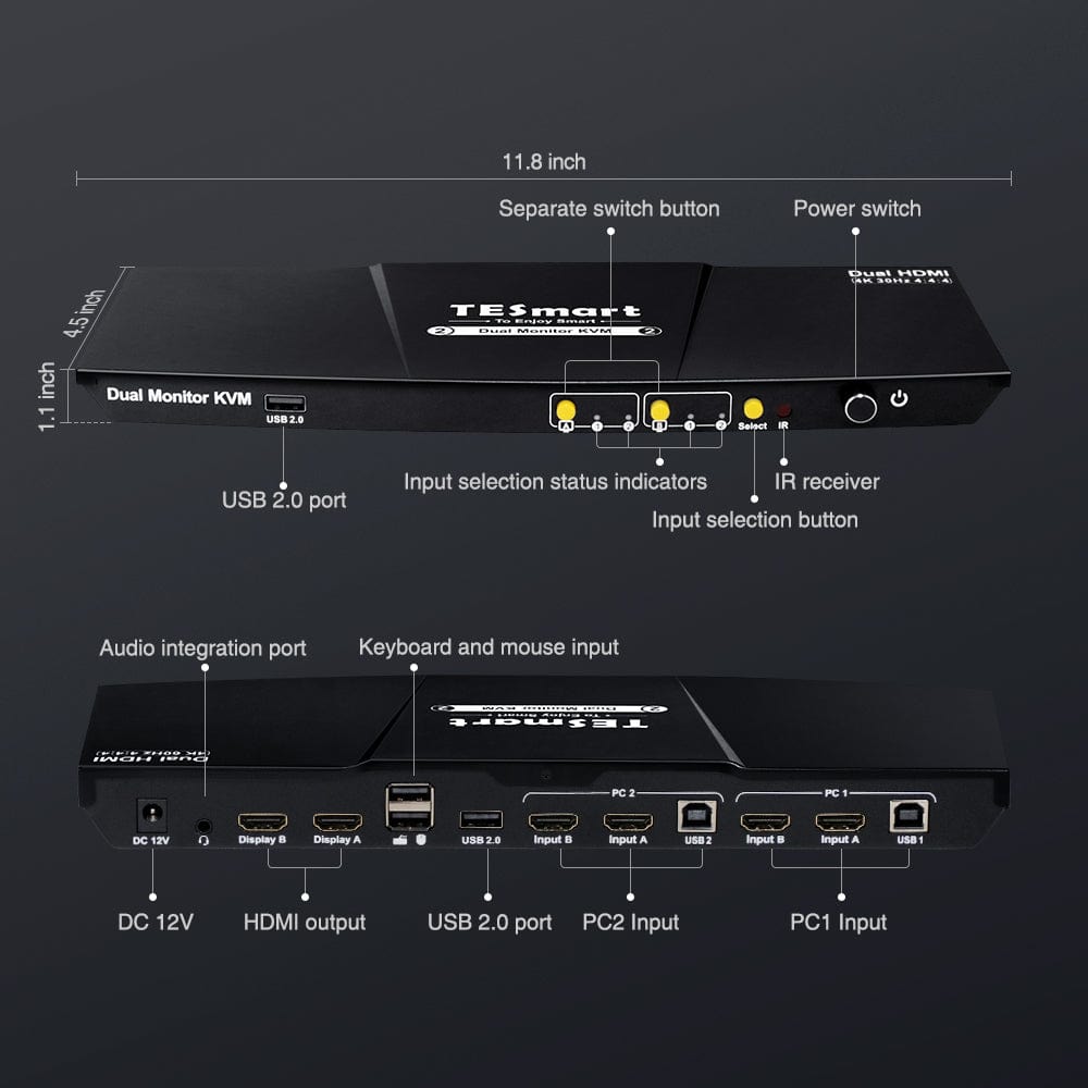- Efficiently manage two PCs with a set of keyboard, mouse, and dual 4K30Hz displays.