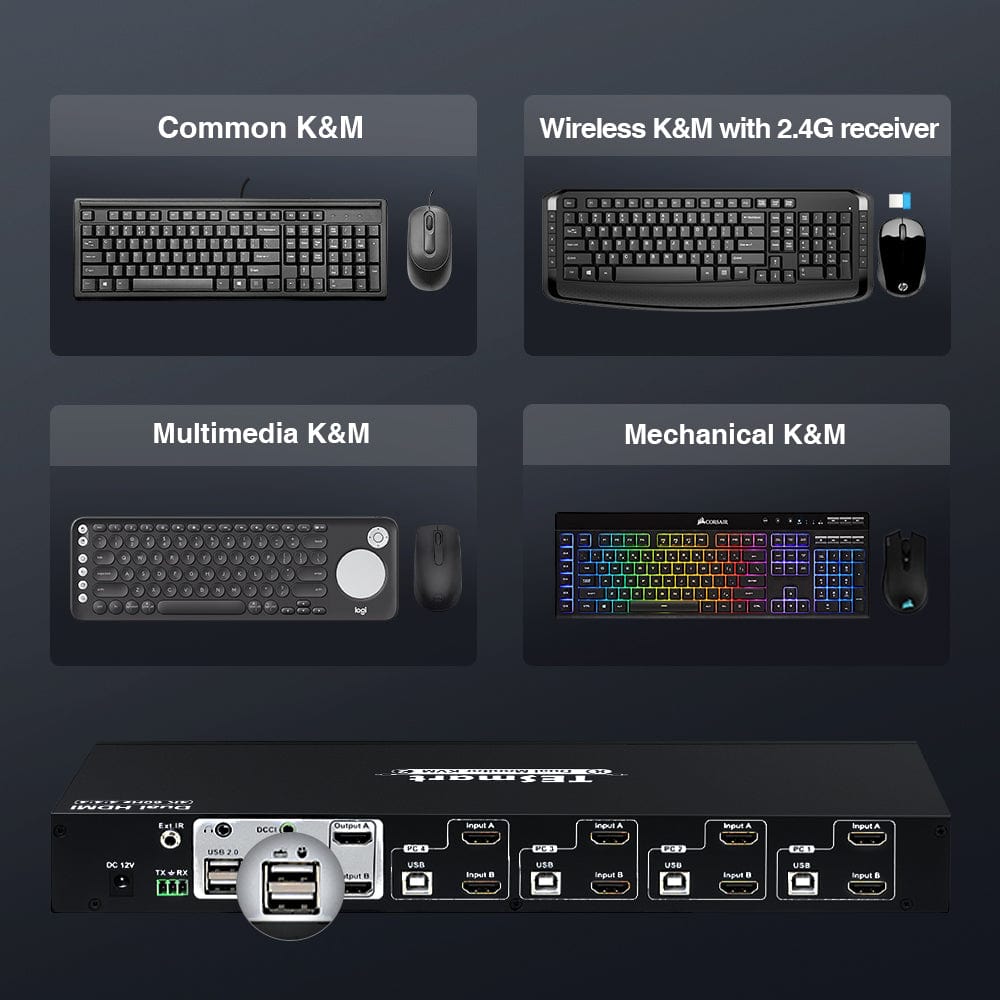 TESmart Dual Monitor KVM Switcher 4 Port Dual Monitor KVM Switch Kit HDMI 4K60Hz with EDID 4 Port Dual Monitor KVM Switch Kit HDMI 4K60Hz with EDID HKS0802A1U