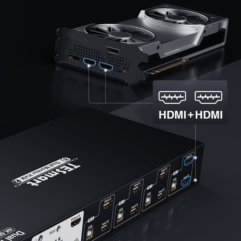 Immerse in unparalleled clarity with dual 4K60Hz HDMI outputs. Our TESmart KVM Switch enhances both your productivity and entertainment with ultra-smooth and highly detailed imagery.