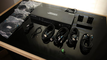 • The KVM switch comes with 4 x 1.5m HDMI/USB combo cables and 4 x 1.5m HDMI cables. We ensure that all 4 of your computers are connected to the KVM. Typically, monitors come with their own cables. If you need additional cables, we also have high-quality cables for you to choose from.