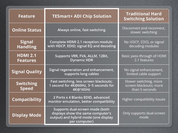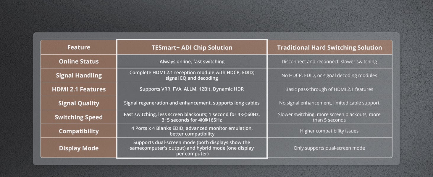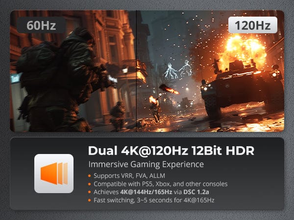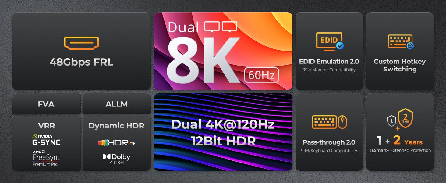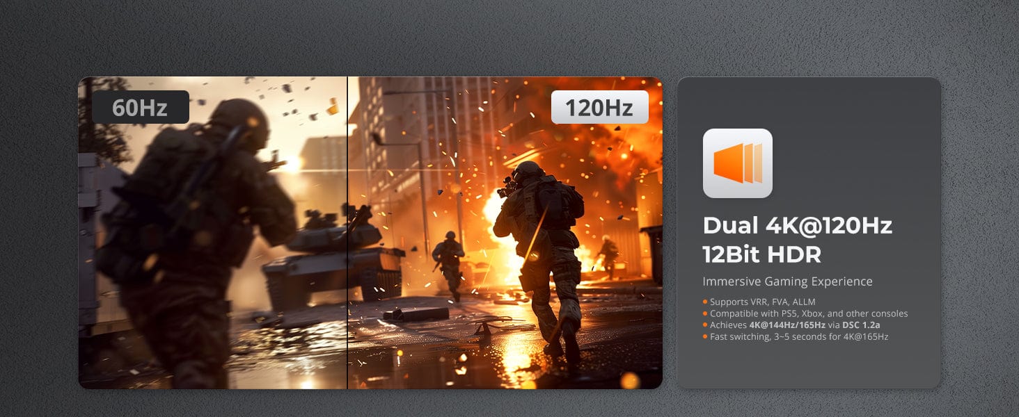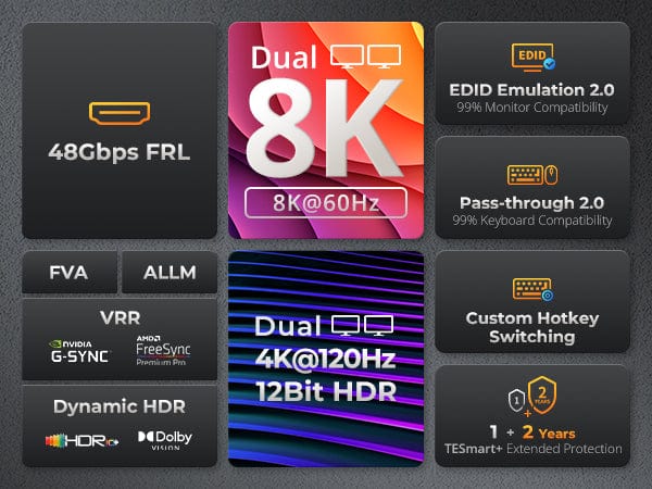 HDMI 2.1 Dual 4K144Hz KVM Switch Gaming Dock for 2 PCs & 2 Monitors, w/ ADI Chip, EDID, VRR, FVA, ALLM, and Dynamic HDR