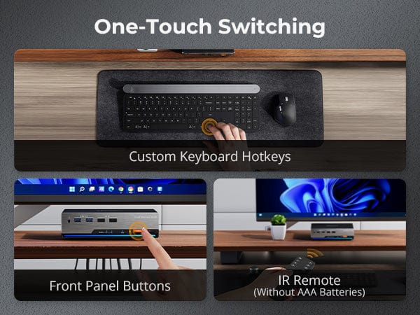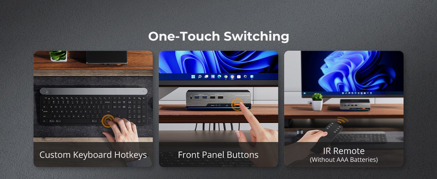 • Seamless Switching: Shortcut keys/mouse/buttons/remote control