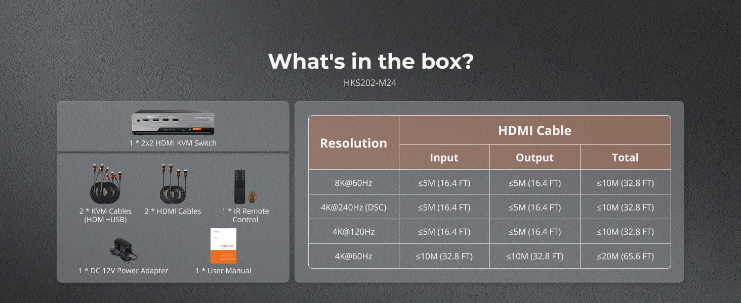 The HKS202-M24 models support HDMI2.1 protocol, with a maximum bandwidth of up to 48Gbps.