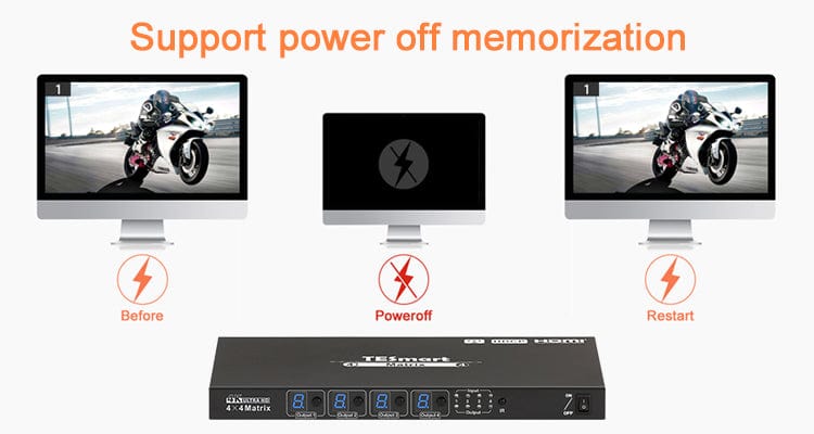 - Matrix status could be memorized after power down, automatically restore previous matrix status after next power on.