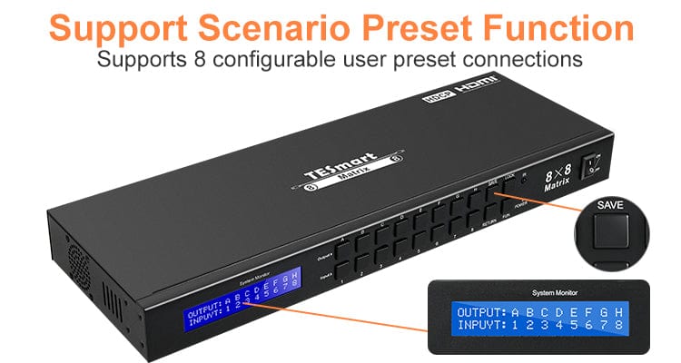- Matrix status could be memorized after power down, automatically restore previous matrix status after next power on