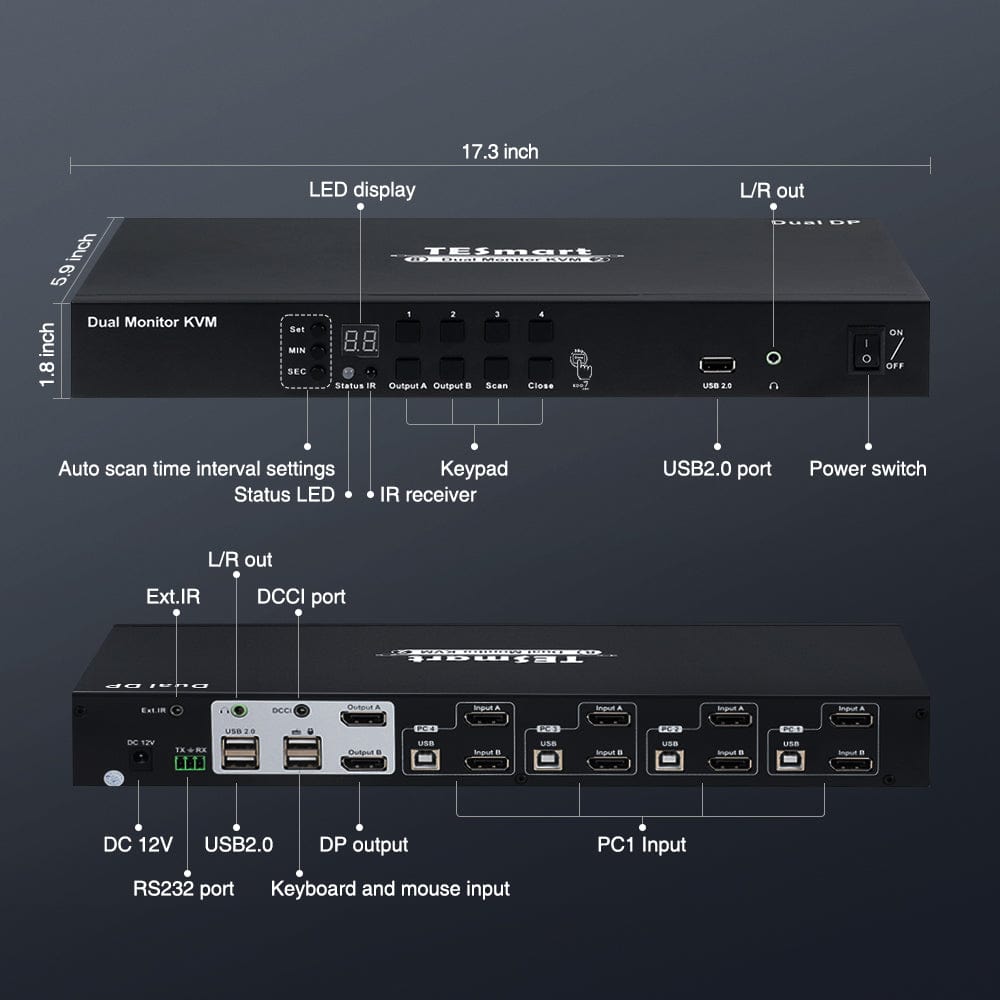 Choose your ideal switching method:Keyboard Hotkeys, IR Remote, or Front Panel Buttons.